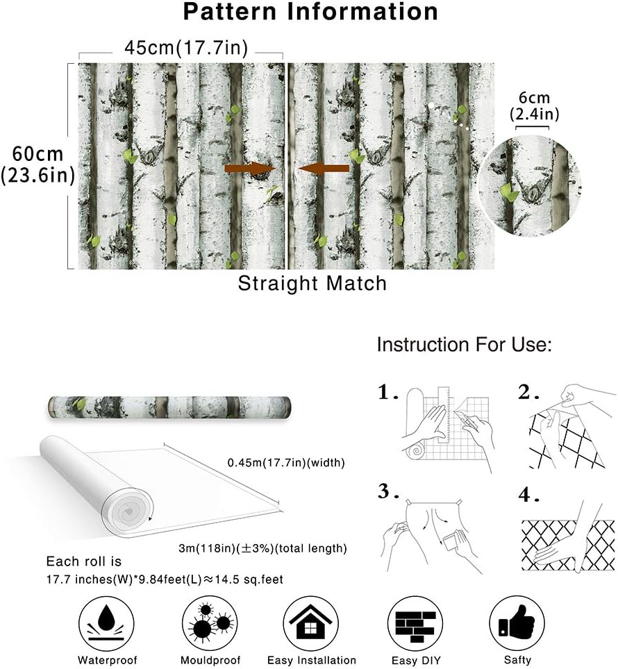Buy Haokhome 92073 Forest Birch Tree Wood Peel And Stick Wallpaper Removable Grey Brown Green Vinyl Self Adhesive 17 7in X 9 8ft Online In Turkey B08cxkwdpv